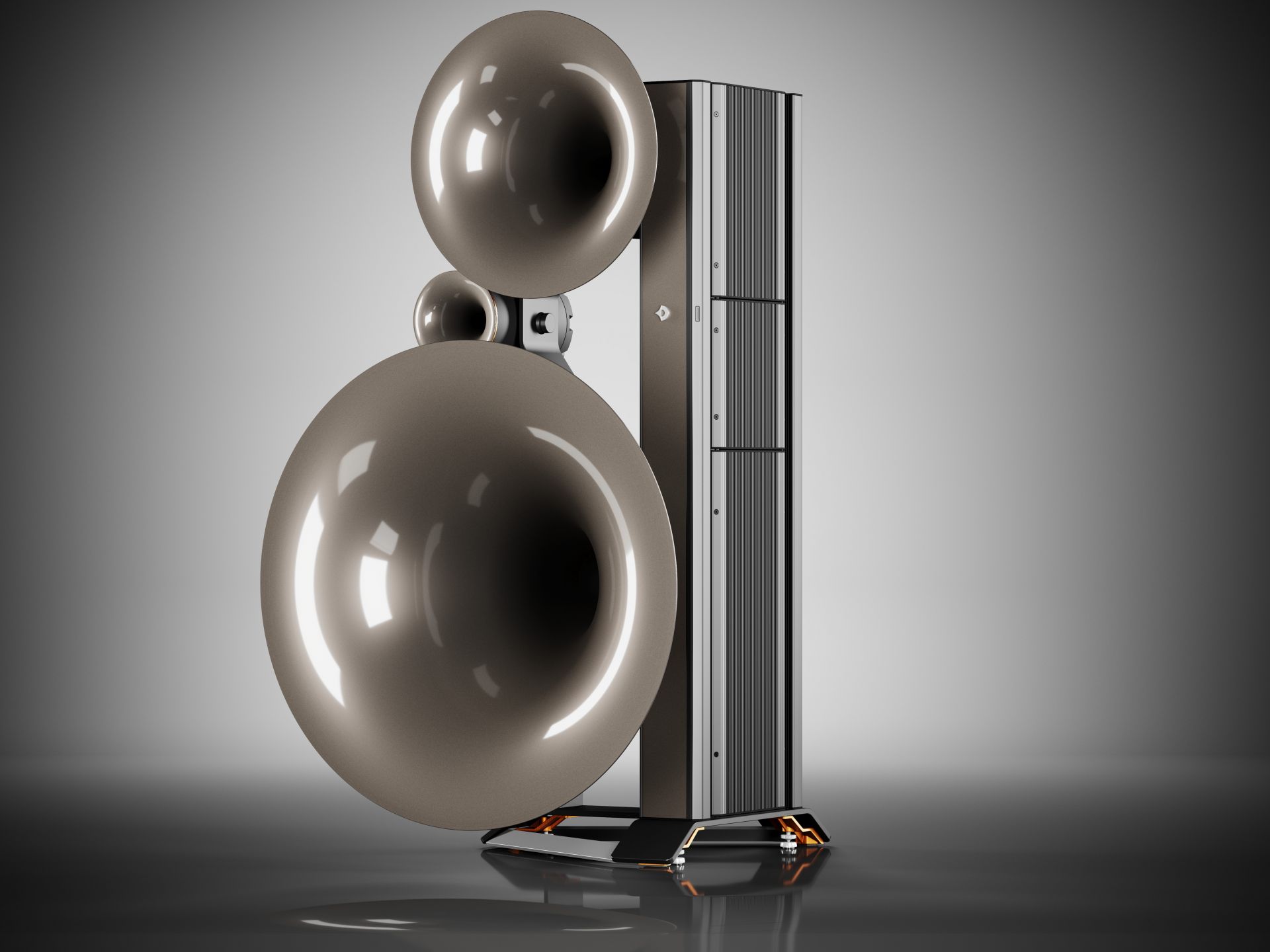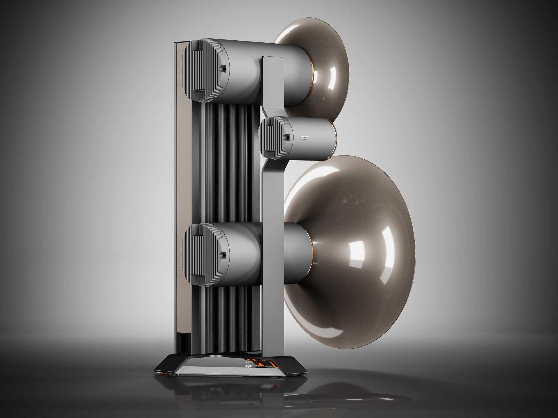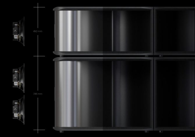 - Phase-linear coplanar arrangement of the acoustic centers of all drivers for overwhelming spatiality and depth.