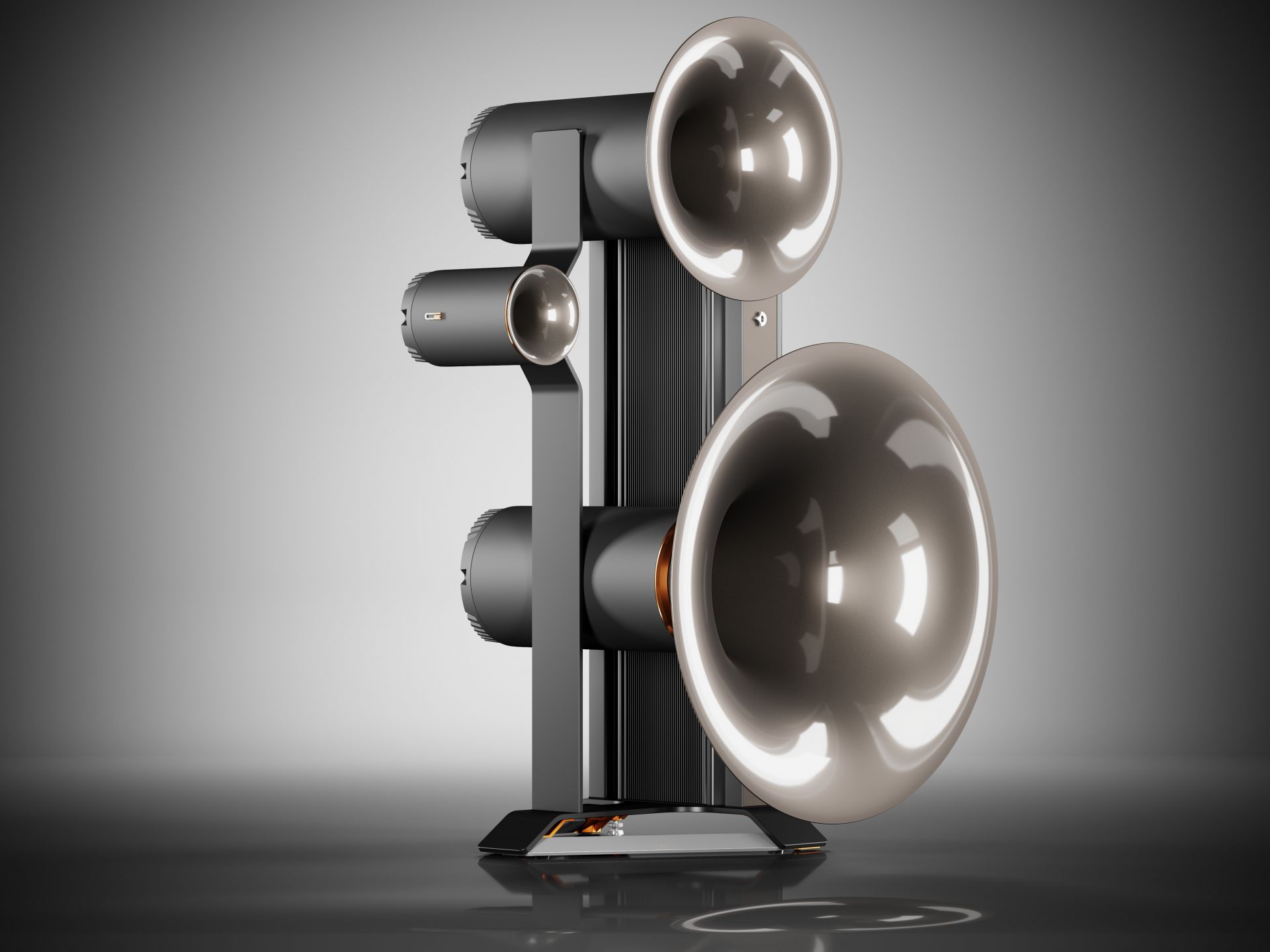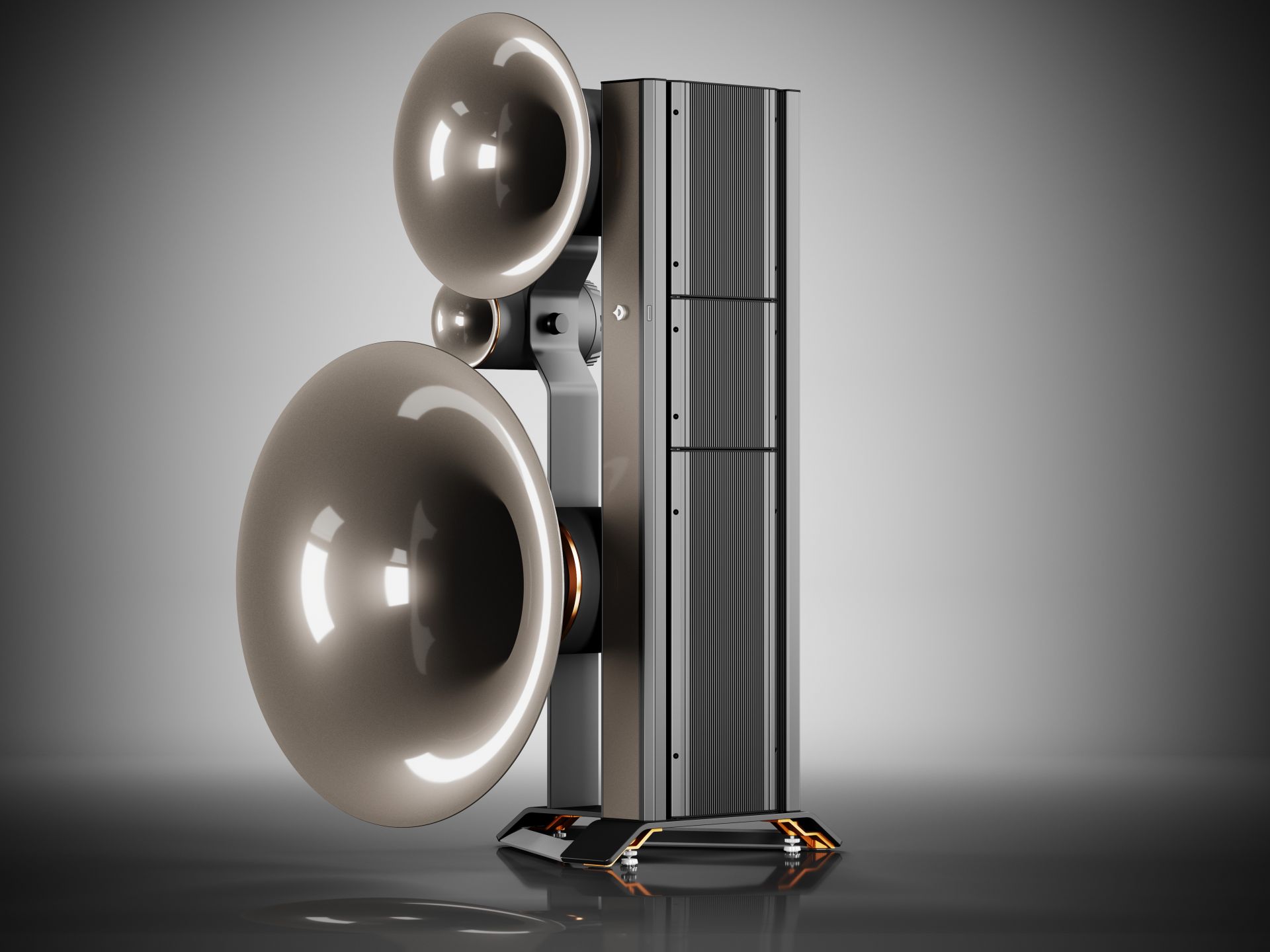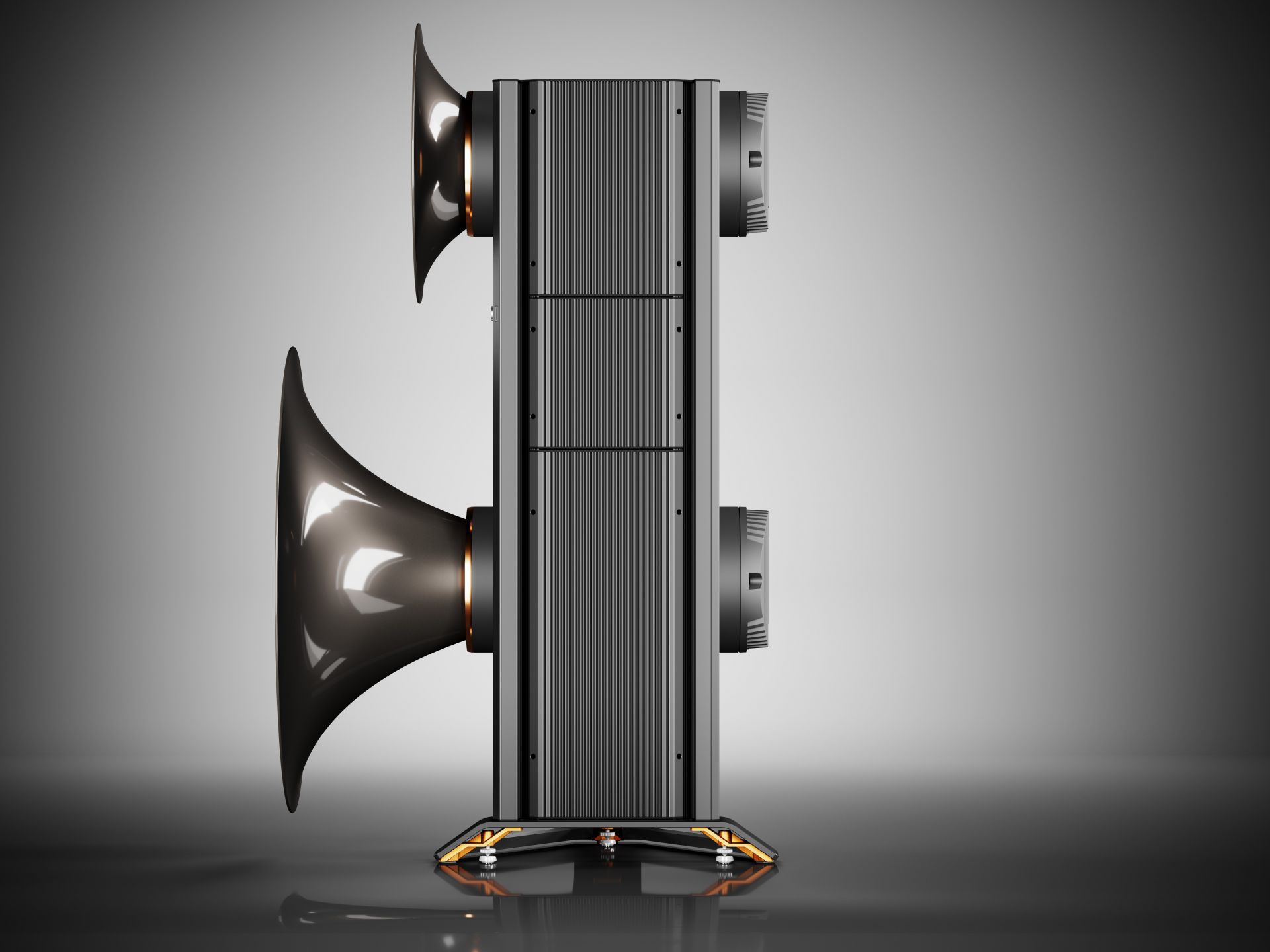 - Phase-linear coplanar arrangement of the acoustic centers of all drivers for overwhelming spatiality and depth.