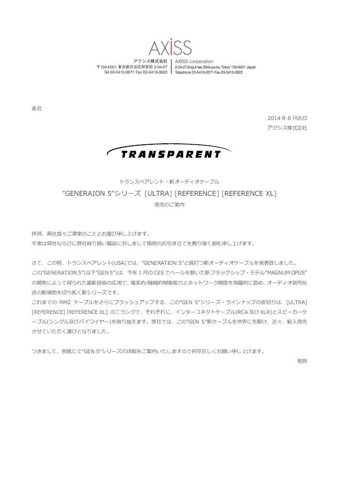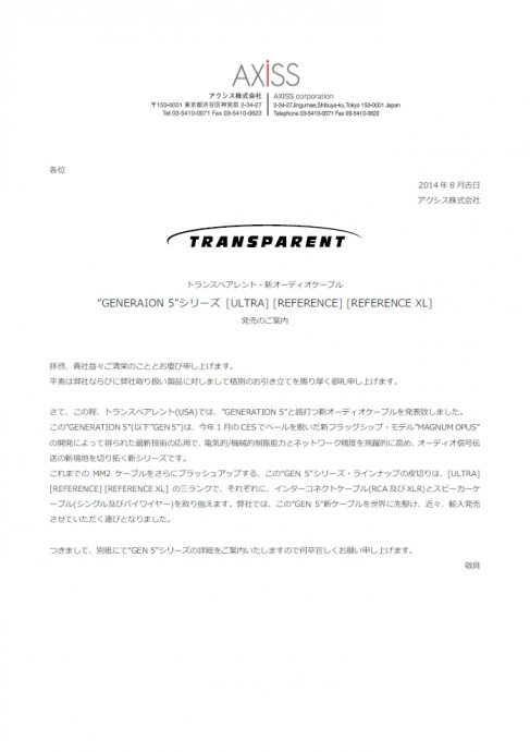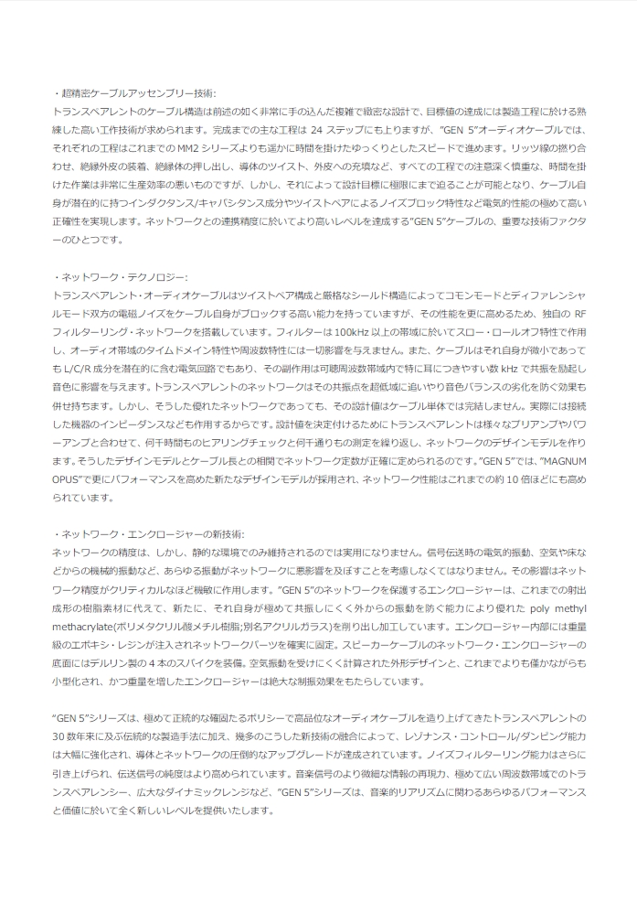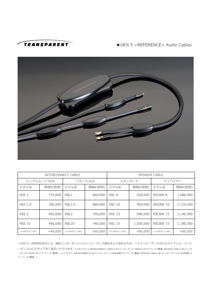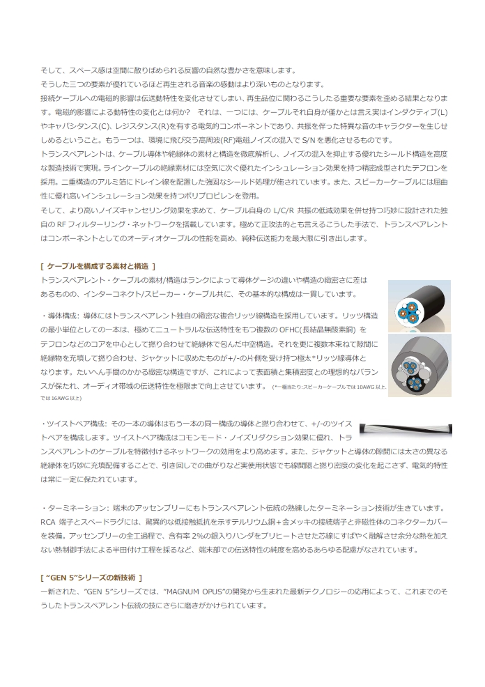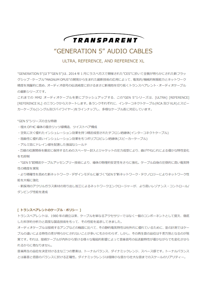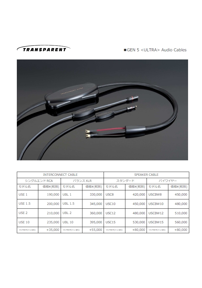 Transparentから、新世代のケーブル群「 GENERATION 5 」登場!!<詳細>