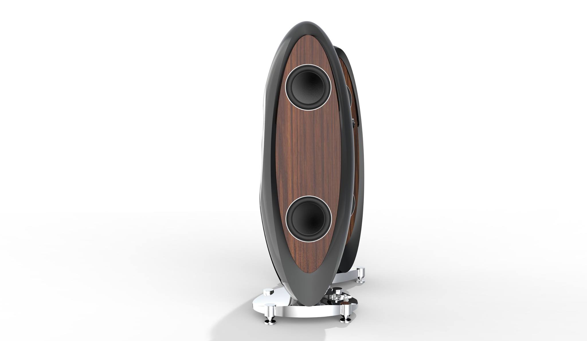 With its oval design, the Concentro is a dramatic departure from the more traditional cabinet designs used by ELAC to date. The front and rear sides are finished in high-gloss lacquer – in a virtually unlimited range of colors. Dark side panels create contours that give the upwardly tapered cabinet a more slender appearance. High-end ambitions are reflected in every detail. This is a speaker that simply commands admiration – which will certainly be forthcoming from ELAC fans worldwide.