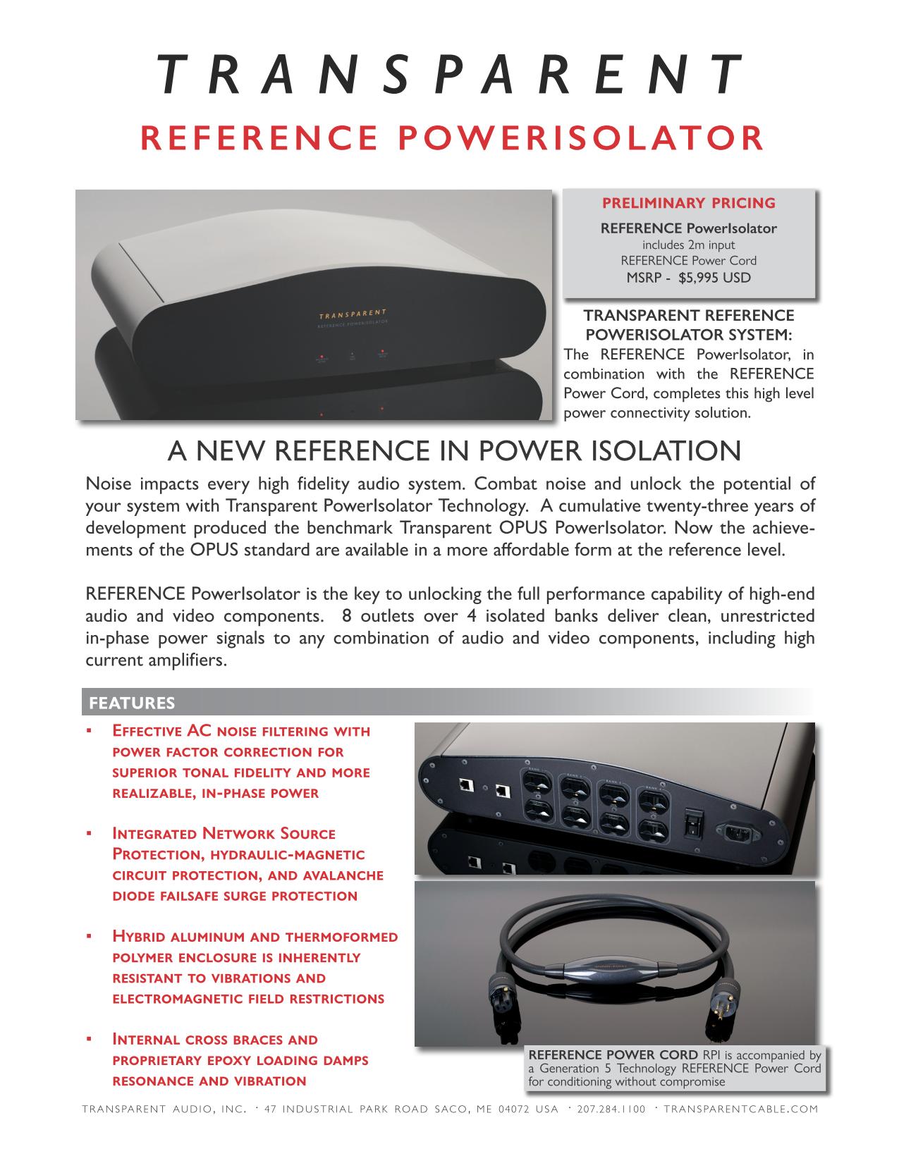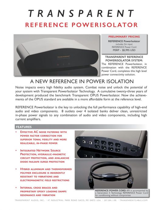Transparent Cableから、新「 REFERENCE PowerIsolator 」登場!!