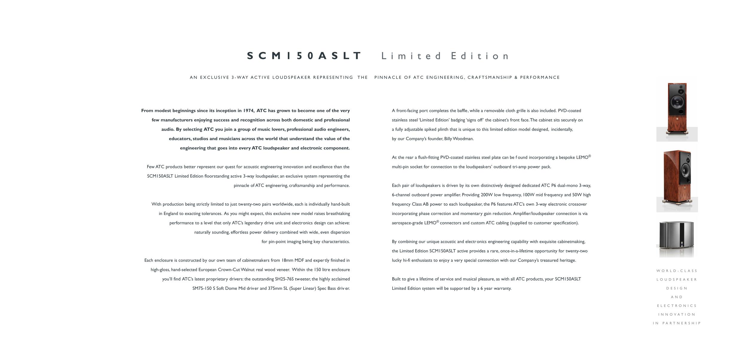 As is customary with ATC products the SCM150ASLT and P6 are covered by a six-year warranty.