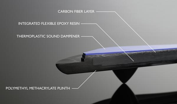 Stiff, light, carbon-fiber shells still encase OPUS networks, and Integrated Flexible Epoxy Resin (IFER) fills every void. In addition, we have preserved the iconic outrigger shape of the OPUS Speaker Cable base, but the new platform is much thicker, stiffer, heavier, and more stable. Two layers of PMMA now sandwich a 3/16” carbon fiber plate embedded in a cavity filled with IFER. The stiffer, resonant-free, OSC plinth marries solidly to its carbon fiber carapace with a thin thermoplastic, sound-damping layer, and fasteners bore deeply into the IFER mass that encases the network at a specific torque setting.
