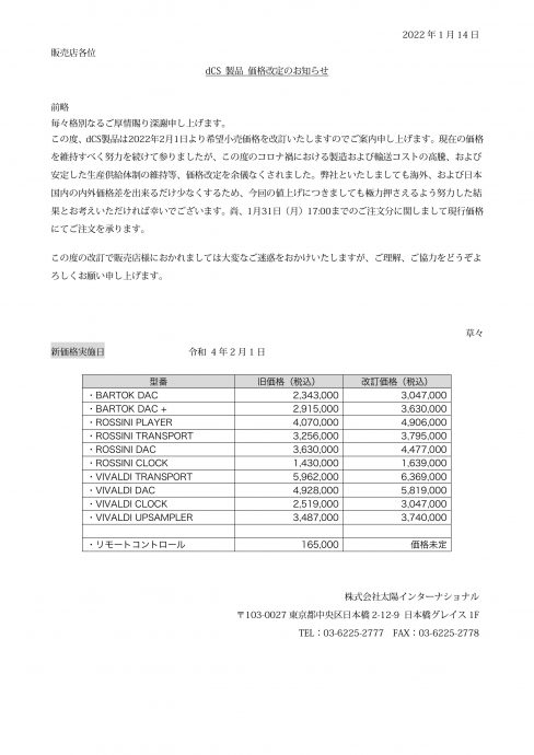 « Wilson Audio XVXの2022年限定モデル ( limited XVX series )Chronosonic XVX 4 Seasons を近日中に発表へ!! DALI 2022年2月1日より国内価格改定へ »