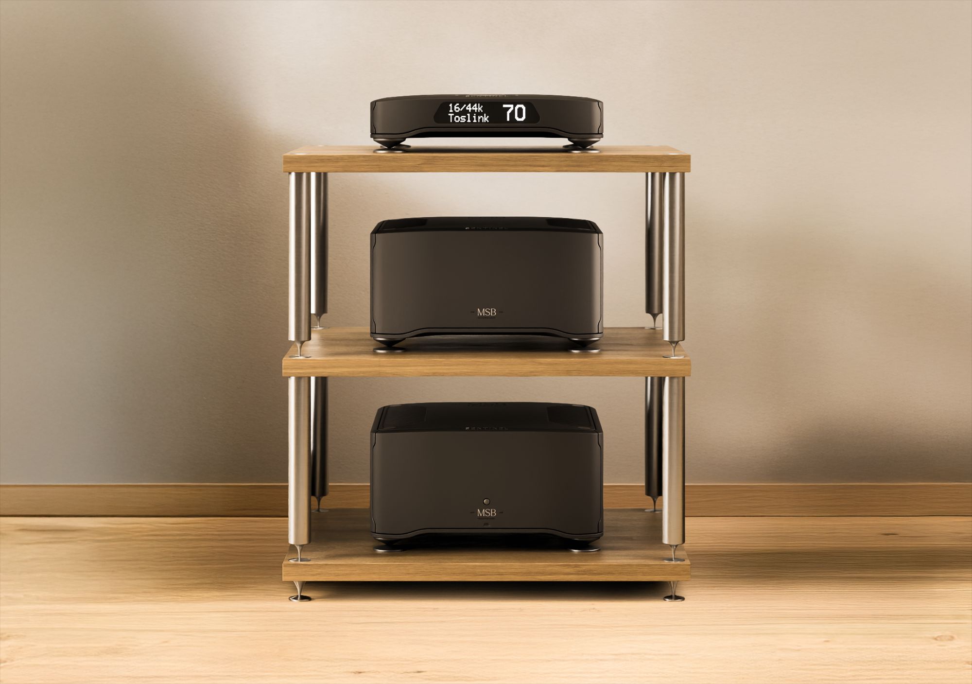The Sentinel System is extremely high-powered compared to other DACs. These units must be placed in a well-ventilated space and out of direct sunlight. In hotter climates, air conditioning will help extend the life of electrical components. For best results, do not stack this system. Instead, place each unit on an individual shelf or surface with plenty of clearance to the sides and above each chassis to allow airflow.