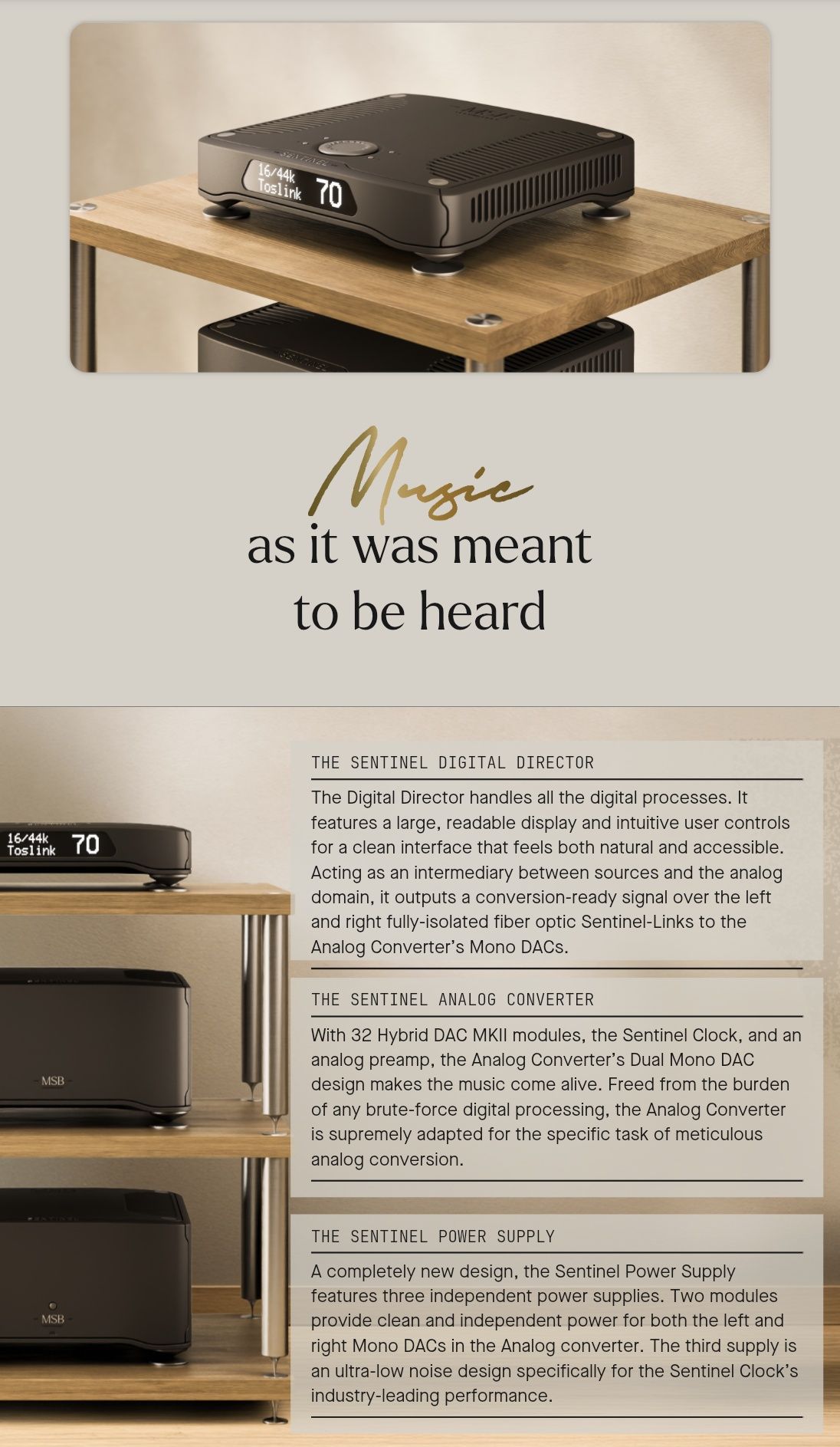 - Each Mono DAC receives a unique digital signal over the monaural fiber optic Sentinel-Link.